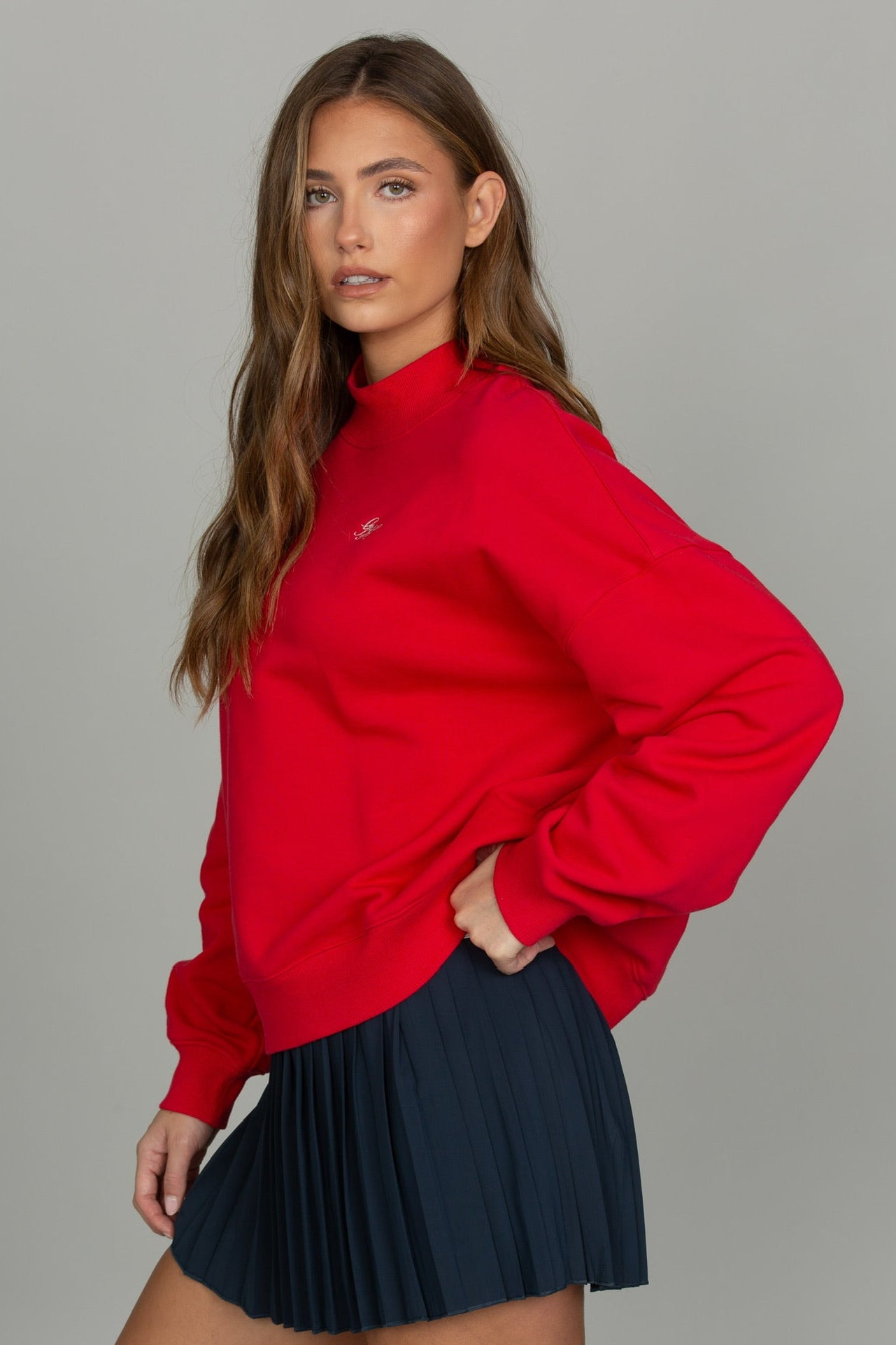 Bright Ruby Prep Mock Neck